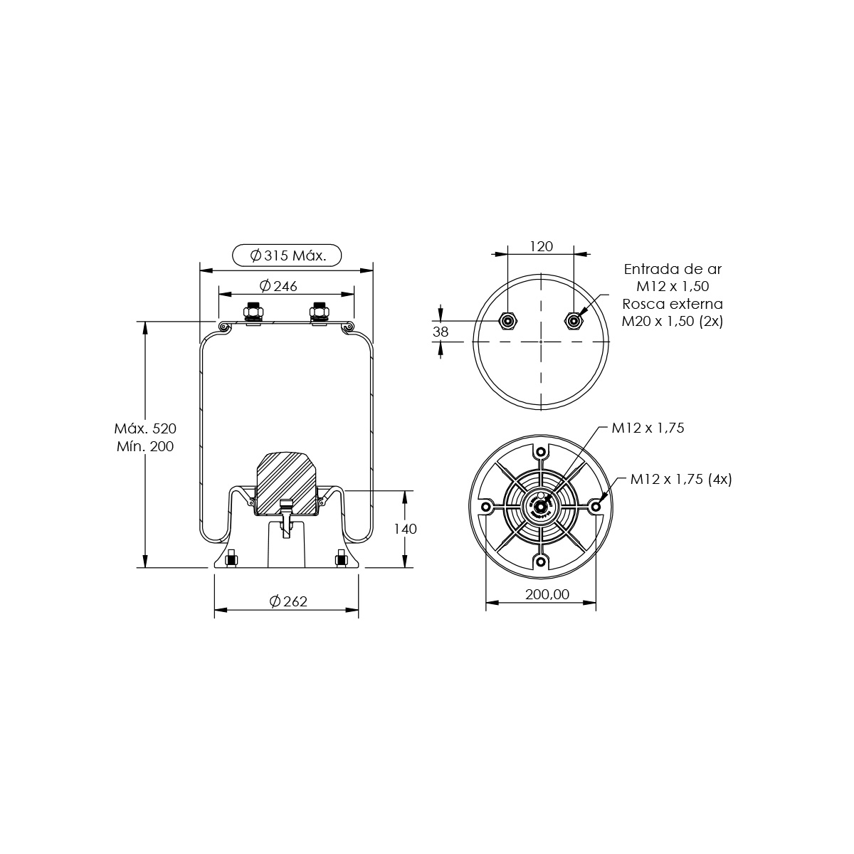 MOLA PNEUMÁTICA SUSPENSÃO EIXO