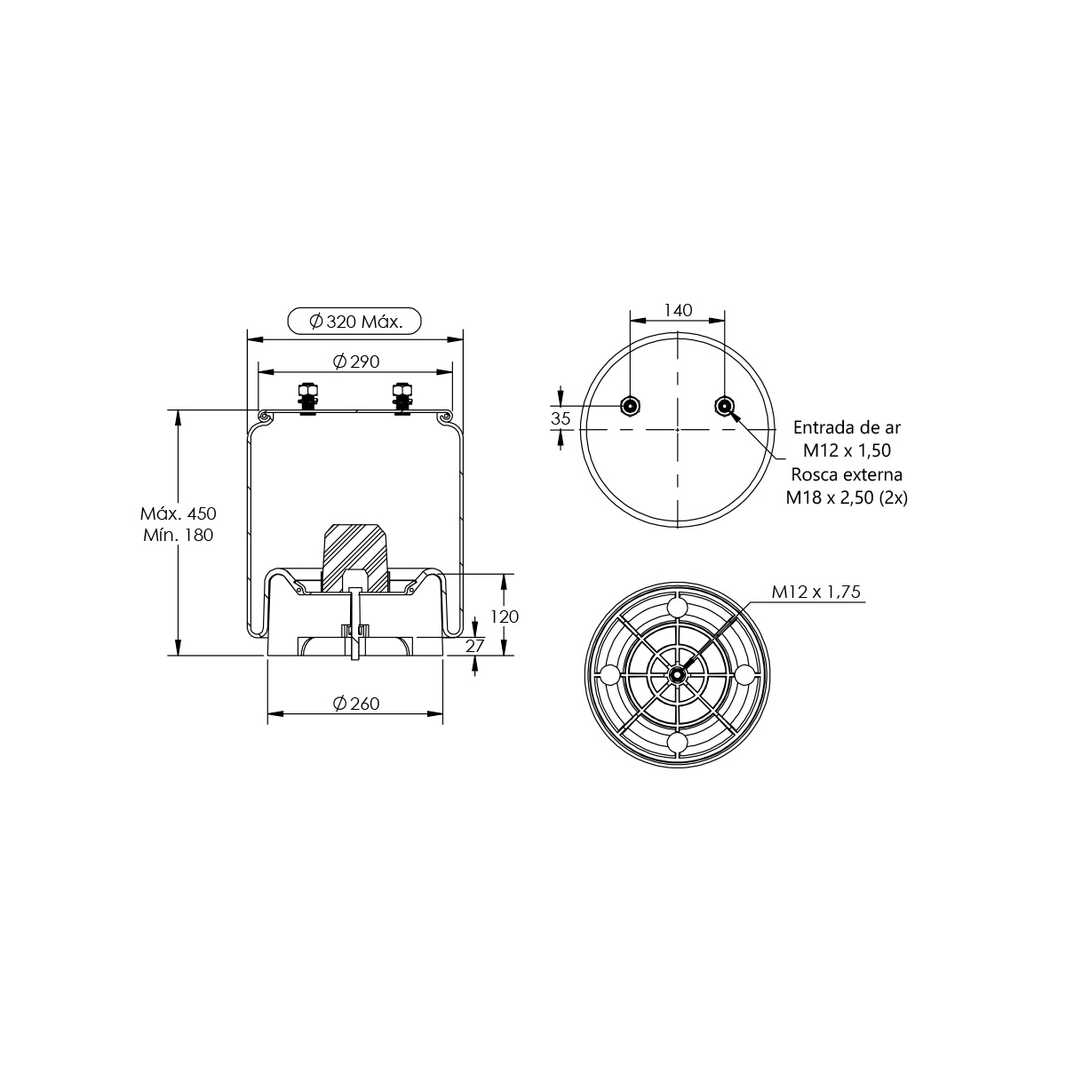 MOLA PNEUMÁTICA SUSPENSÃO EIXO (SEM BASE)