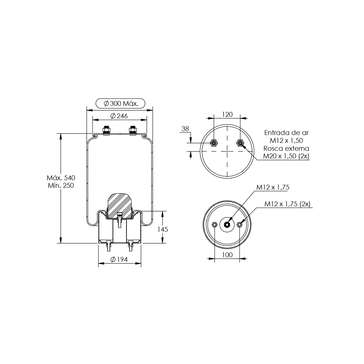 MOLA PNEUMÁTICA SUSPENSÃO EIXO (SEM BASE)