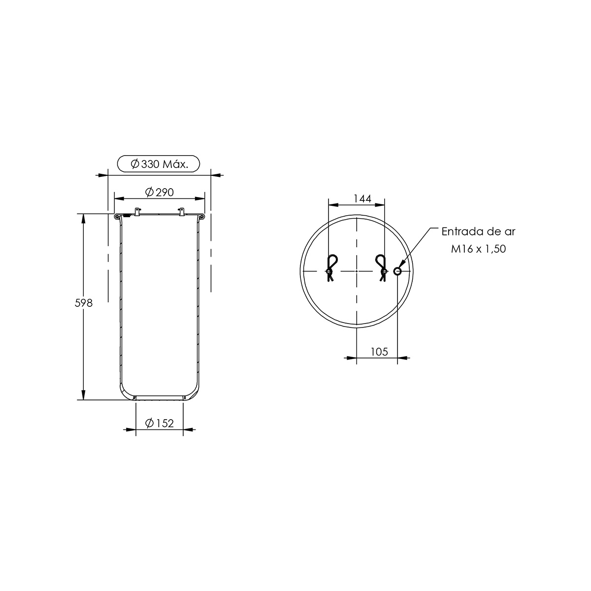 MOLA PNEUMÁTICA SUSPENSÃO EIXO (SEM BASE)